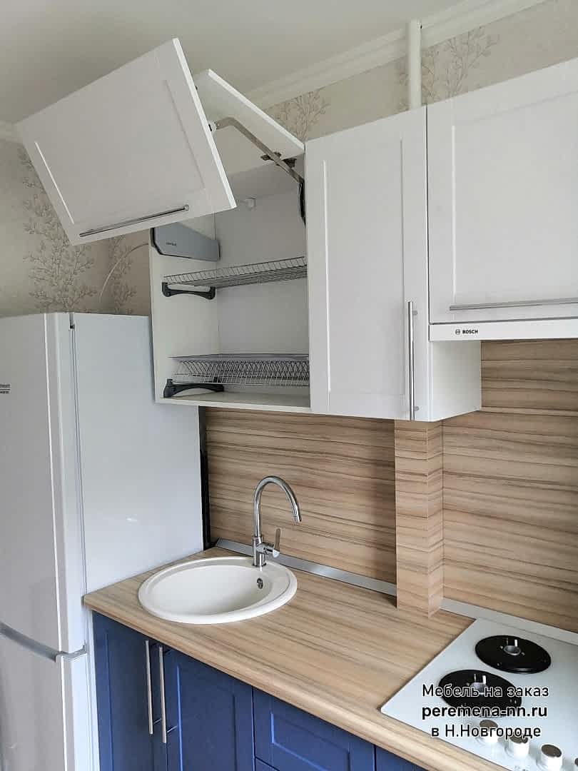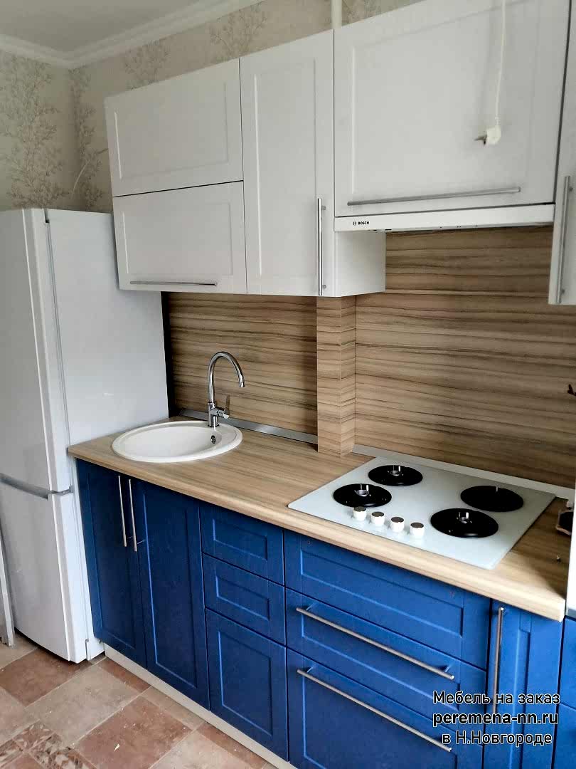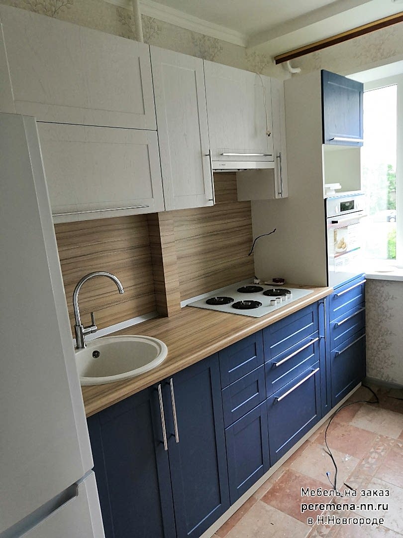 Кухня на заказ в Н.Новгороде. Материал: корпус ЛДСП белый в кромке ПВХ. Фасады мдф в плёнке пвх. Ящики полного выдвижения, скрытого монтажа.