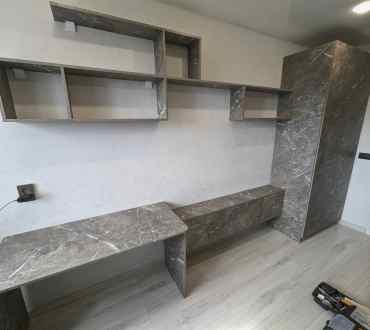 Мебель в детскую комнату. Мебель сделана из лдсп, цвет " рускеала ". Открытие фасадов без ручек push to open. Установлено в Нижнем Новг. ороде на, ул. Сатпаева, 92.