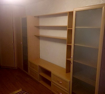 Pin-Up выполнена с угловым шкафом цвет ЛДСП бук (светлый) фасады рамочные с вставкой из МДФ в цвет корпуса и вставками из матового стекла (сатин).