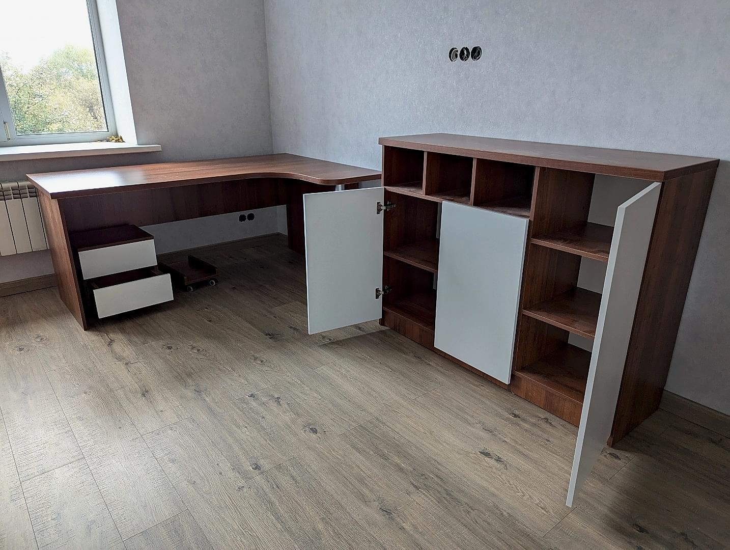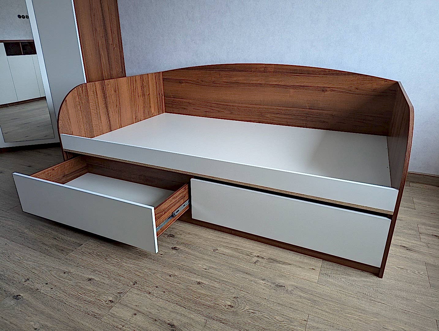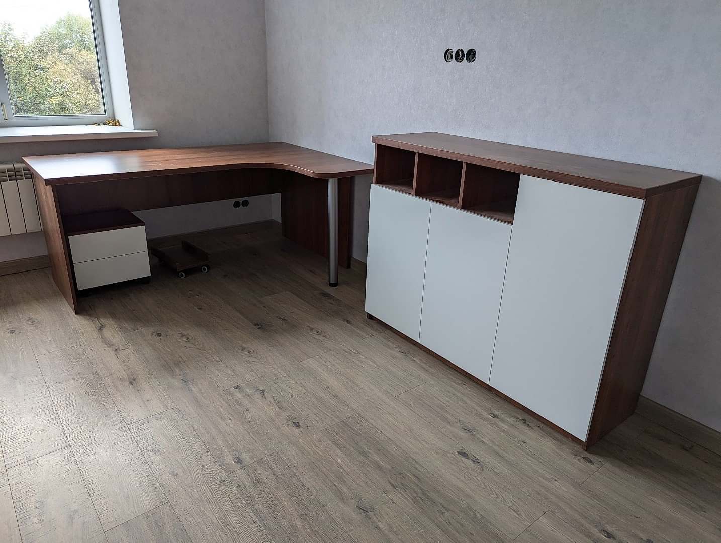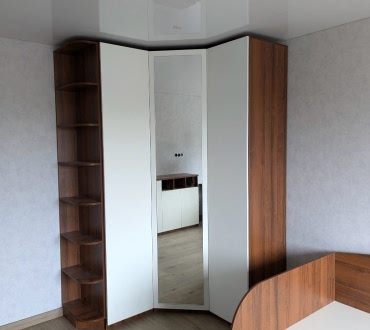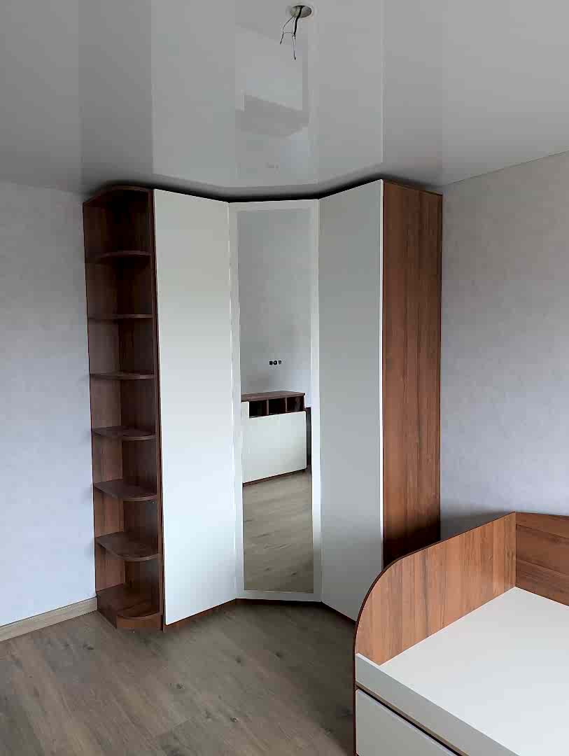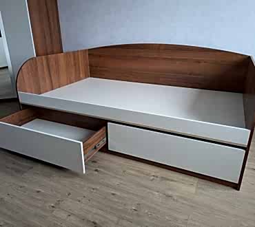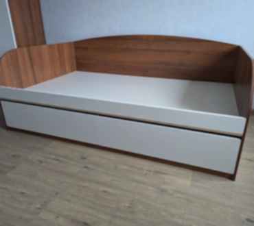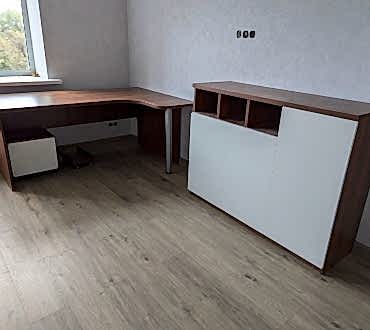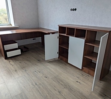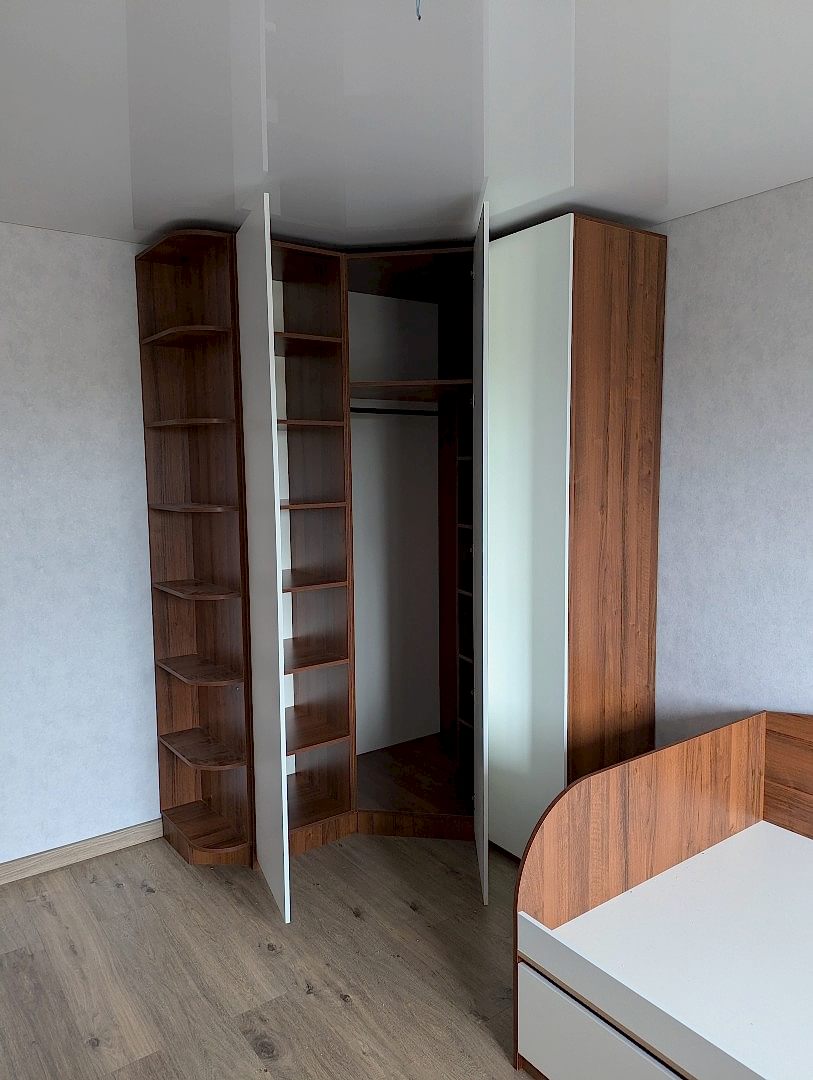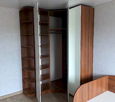 Мебель в детскую комнату ( шкаф угловой, кровать, стол и комод ). Мебель сделана из лдсп, цвет корпуса " ноче экко ", фасады белые. Петли BOYARD с доводчиками. Направляющие ящиков шариковые, полного выдвижения. Мебель установлена в д. Кузьминка наул. Кабанбай батыра, 90.