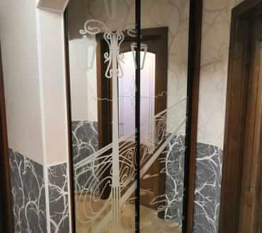 Шкаф-купе встроенный двери зеркало с Pin-Up рисунком.