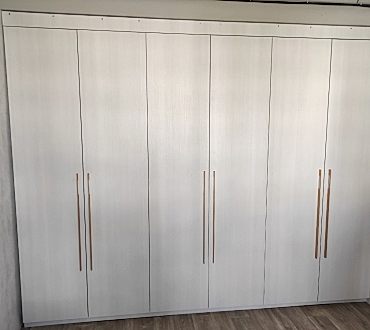 Шкаф распашной. Шкаф сделан из ЛДСП - цвет "Рамух белый". Фурнитура boyard. Сверху Pin-Up для крепления натяжного потолка.
